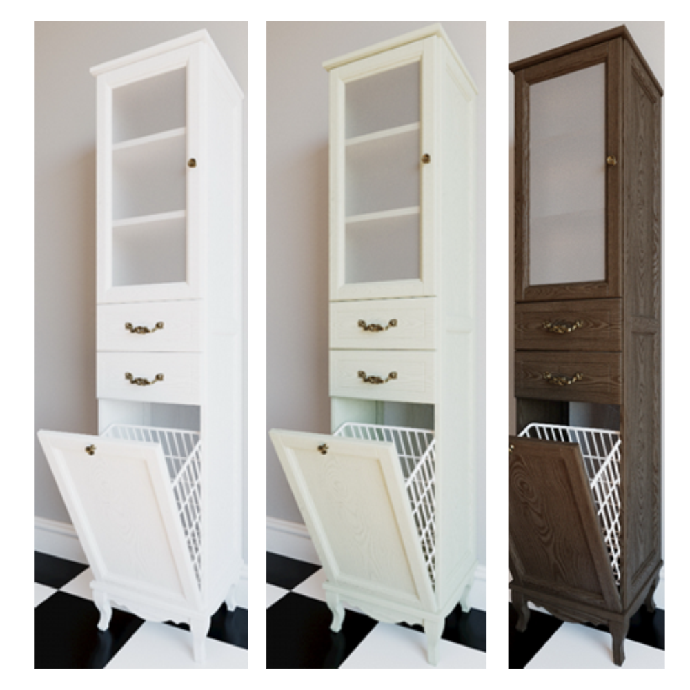 Колонна с корзиной для ванной ValenHouse. Материал корпуса и фасада - массив ясеня. Лакокрасочные материалы (Irurena, Испания) имеют стойкость к ультрафиолету и придают изделию повышенную защиту от влаги. Производство мебели — Россия. Производство и поставка осуществляется в 3 цветах — белый, кальяри, слоновая кость и с ручками на выбор - бронза, золото, хром.