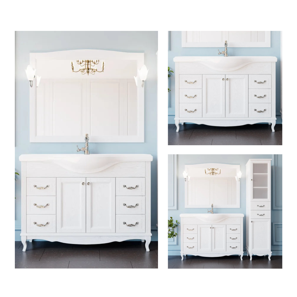 Комплект мебели для ванной комнаты ValenHouse коллекция Эллина 120, в цвете белый, массив ясеня