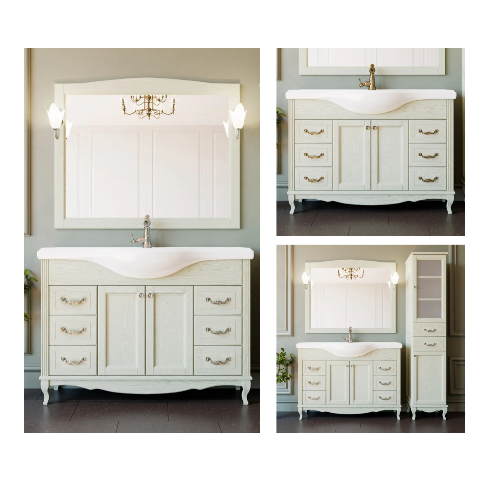 Комплект мебели для ванной комнаты ValenHouse коллекция Эллина 120, в цвете слоновая кость, массив ясеня