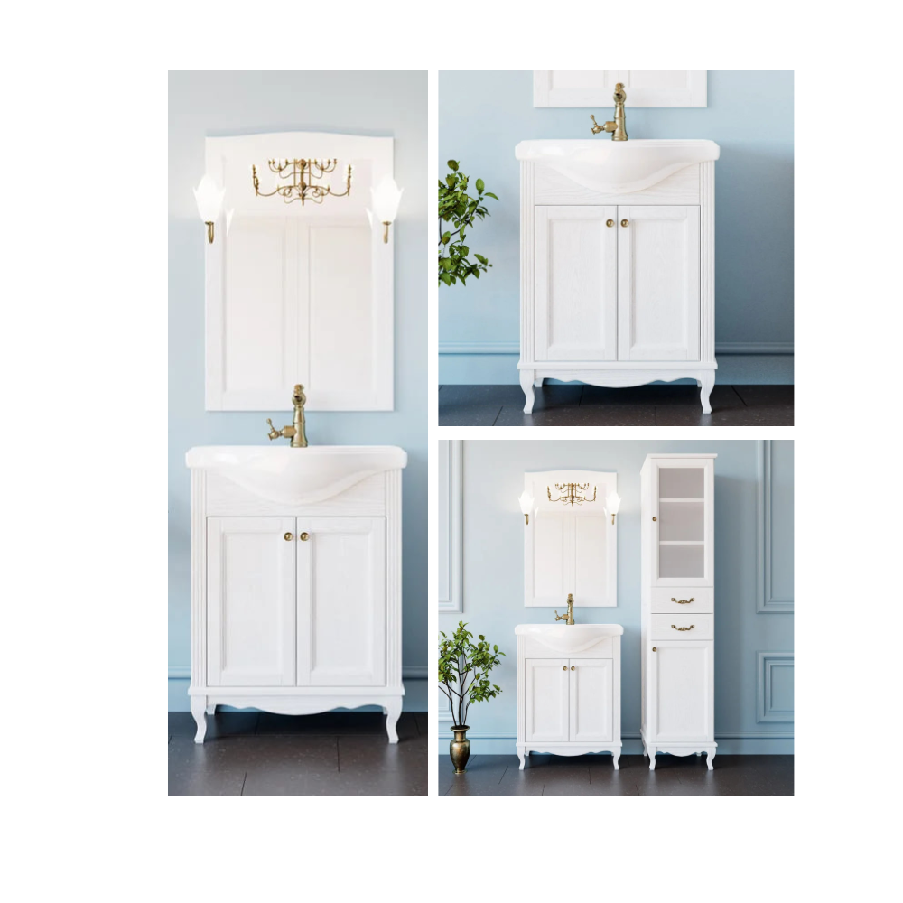 Комплект мебели для ванной комнаты ValenHouse коллекция Эллина 65, в цвете белый, массив ясеня