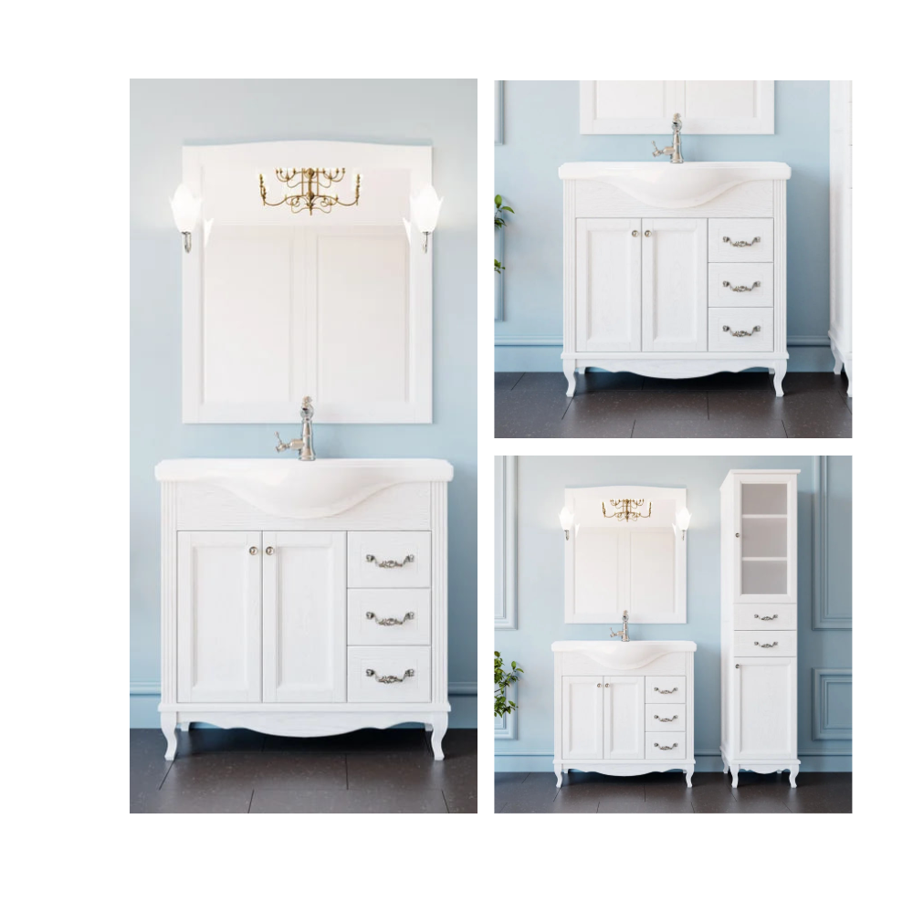 Комплект мебели для ванной комнаты ValenHouse коллекция Эллина 80, в цвете белый, ручки на выбор - бронза, золото, хром, массив ясеня. В базовый комплект мебели для ванной ValenHouse входит: тумба напольная с 3 ящиками и 2 дверцами, зеркало, умывальник. Дополнительно можно приобрести — колонну, светильники для зеркала. Материал корпуса и фасада - массив ясеня. Лакокрасочные материалы (Irurena, Испания) имеют стойкость к ультрафиолету и придают изделию повышенную защиту от влаги. Производство мебели — Россия. Производство и поставка осуществляется в 3 цветах — белый, кальяри, слоновая кость и с ручками на выбор - бронза, золото, хром.