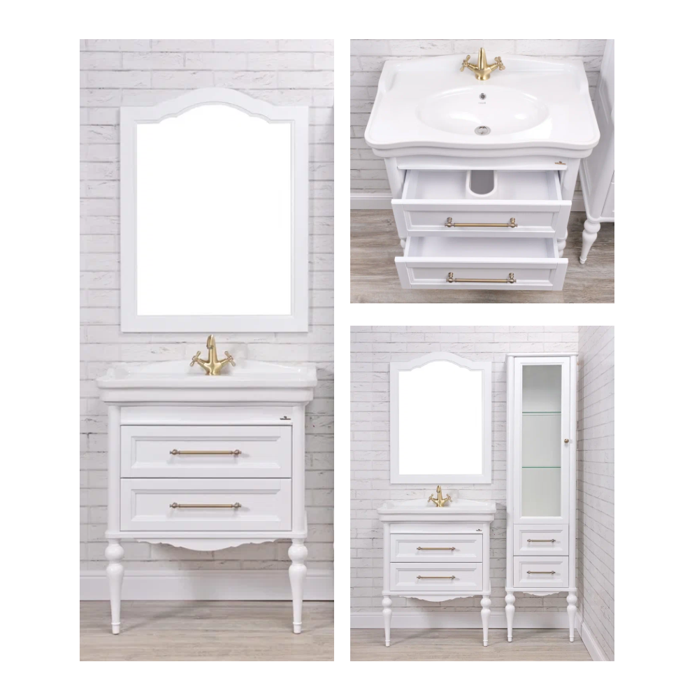 Комплект мебели для ванной комнаты ValenHouse коллекция Эстетика 80, в цвете белый, массив ясеня