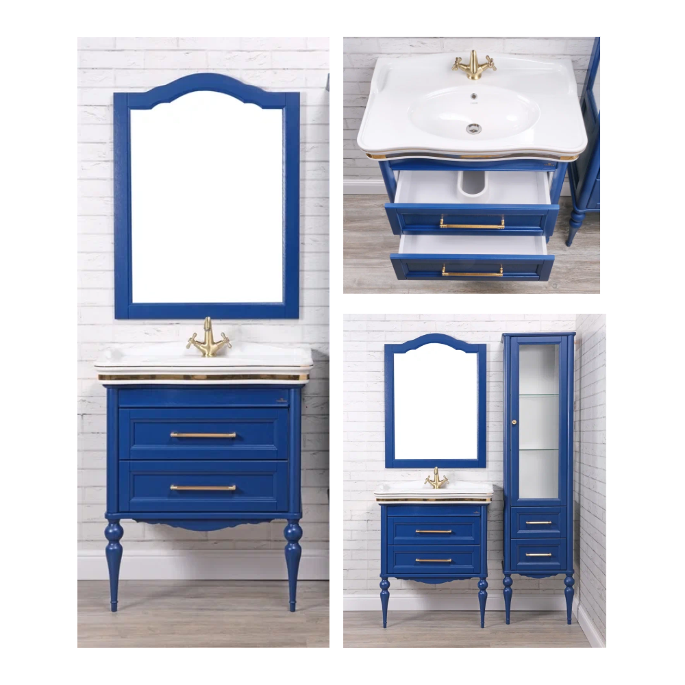 Комплект мебели для ванной комнаты ValenHouse коллекция Эстетика 80, в цвете синий, массив ясеня