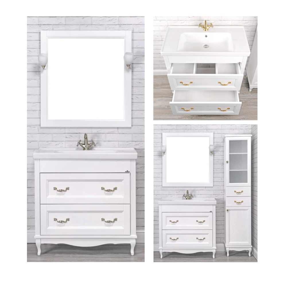 Комплект мебели для ванной комнаты ValenHouse коллекция Лиора 90, в цвете слоновая кость, массив ясеня