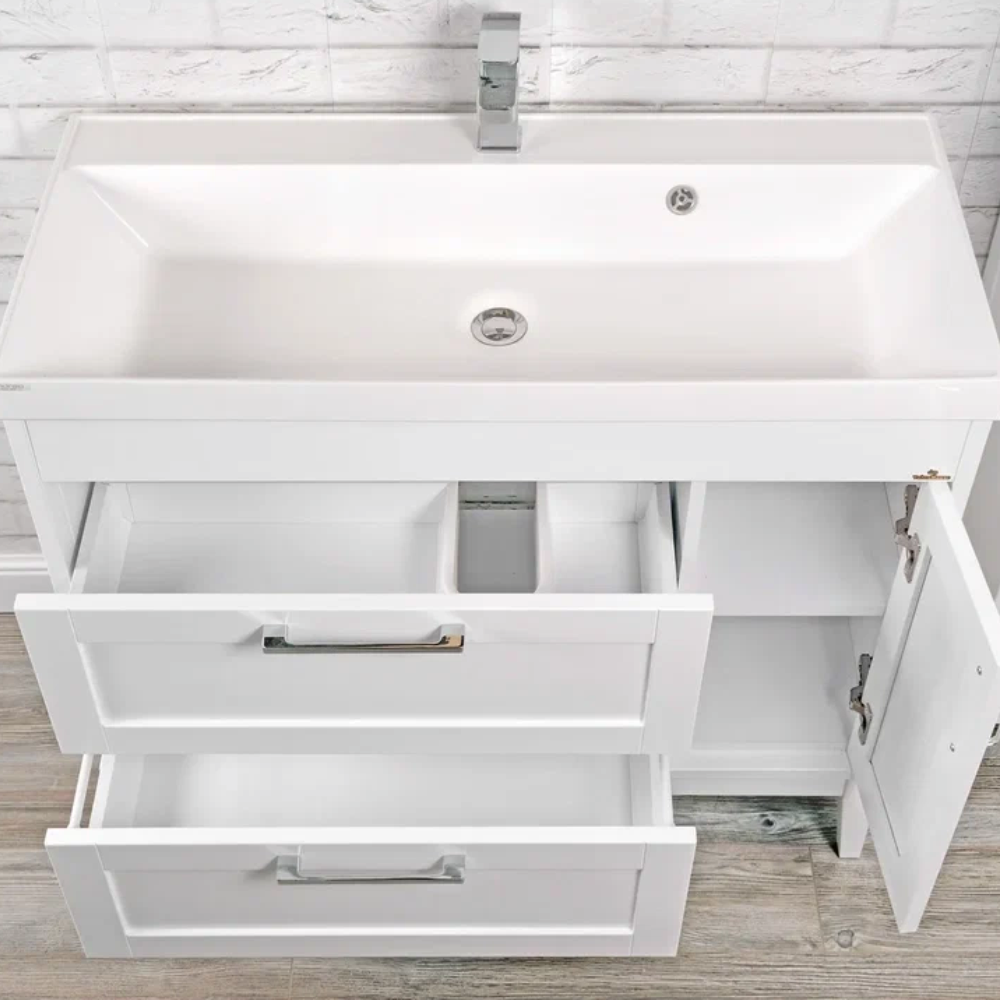 Тумба напольная ValenHouse коллекция Эйвори 100 с 2 ящиками и 1 дверцой, в цвете белый, ручки на выбор - бронза, золото, хром. Материал корпуса и фасада - массив ясеня. Лакокрасочные материалы (Irurena, Испания) имеют стойкость к ультрафиолету и придают изделию повышенную защиту от влаги. Производство мебели — Россия. Производство и поставка осуществляется в 2 цветах — белый, серый и с ручками на выбор - бронза, золото, хром.