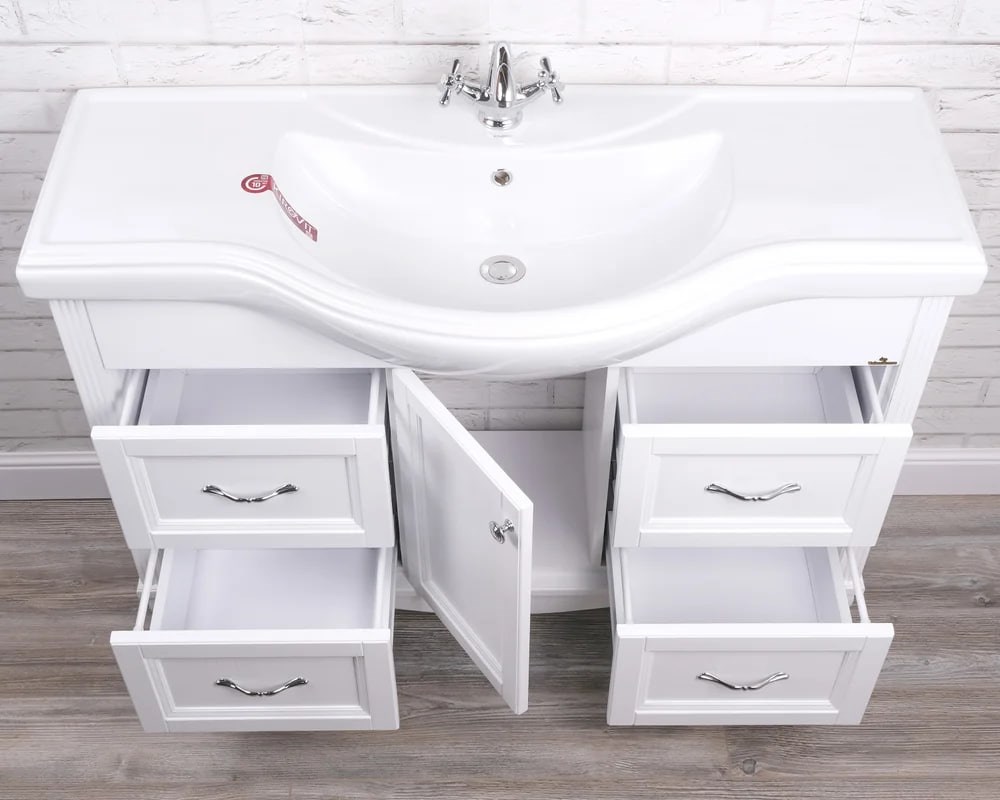Тумба напольная ValenHouse коллекция Эллина 120-2 с 4 ящиками и 1 дверцой, в цвете белый, ручки на выбор — бронза, золото, хром. Материал корпуса и фасада - массив ясеня. Лакокрасочные материалы (Irurena, Испания) имеют стойкость к ультрафиолету и придают изделию повышенную защиту от влаги. Производство мебели — Россия. Производство и поставка осуществляется в 3 цветах — белый, кальяри, слоновая кость и с ручками на выбор - бронза, золото, хром.