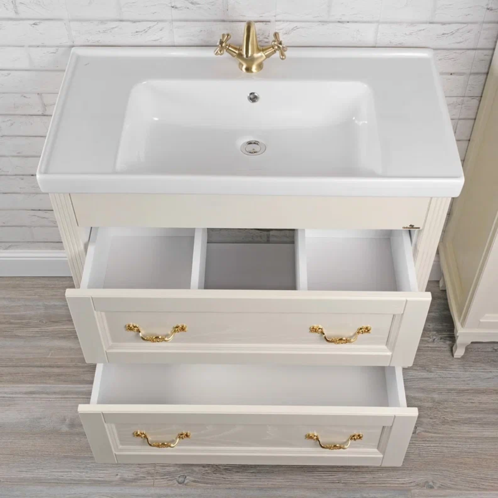 Тумба напольная ValenHouse коллекция Лиора 90, в цвете слоновая кость, массив ясеня
