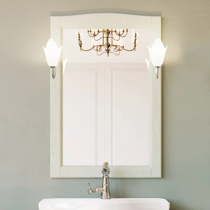 Зеркало ValenHouse коллекция Эллина 65, в цвете слоновая кость. Зеркало для ванной ValenHouse. Материал корпус - массив ясеня. Лакокрасочные материалы (Irurena, Испания) имеют стойкость к ультрафиолету и придают изделию повышенную защиту от влаги. Производство мебели — Россия. Производство и поставка осуществляется в 3 цветах — белый, кальяри, слоновая кость.